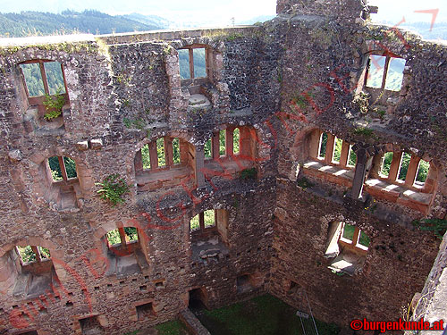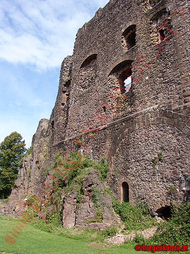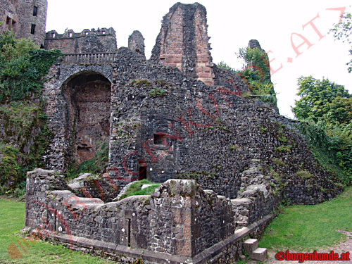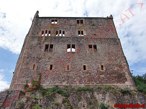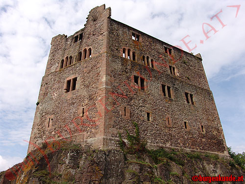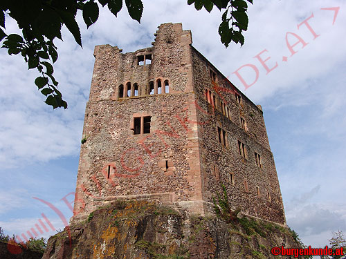 Das "Alte Hus", der heute noch fünf Stockwerke hoch aufragenden Palas, trotz Wind, Wetter und Jahrhunderten. Es zeugt uns heute noch von den vergangenen glanzvollen Tagen der Geroldsecker.