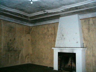 Im Inneren der Anlage bietet sich ein weitaus schlimmeres Bild. Die Räumlichkeiten sind bis auf einige wenige Gegenstände leergeräumt und durchwegs feucht.